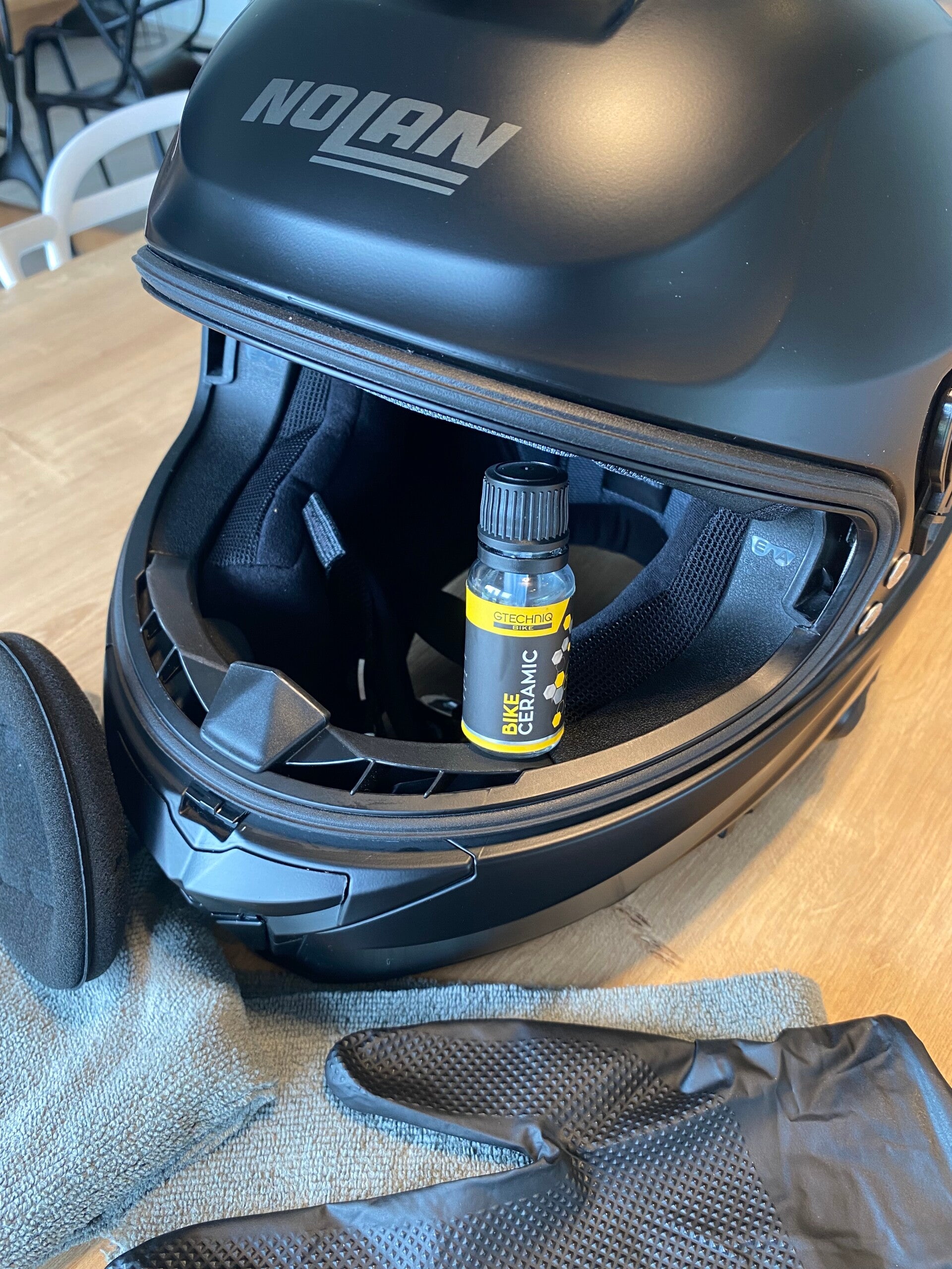 Nos revêtements céramiques s'appliquent aussi sur votre casque : projections de roulages, pluie et autres insectes seront éliminés en un instant tout en préservant la qualité et la teinte de votre casque.
